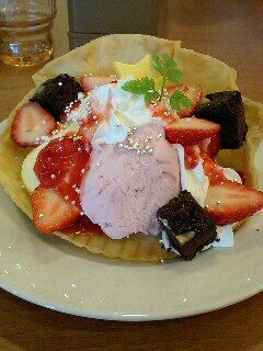 カルボナーラのスープスパと、苺のタルトを食べましたww